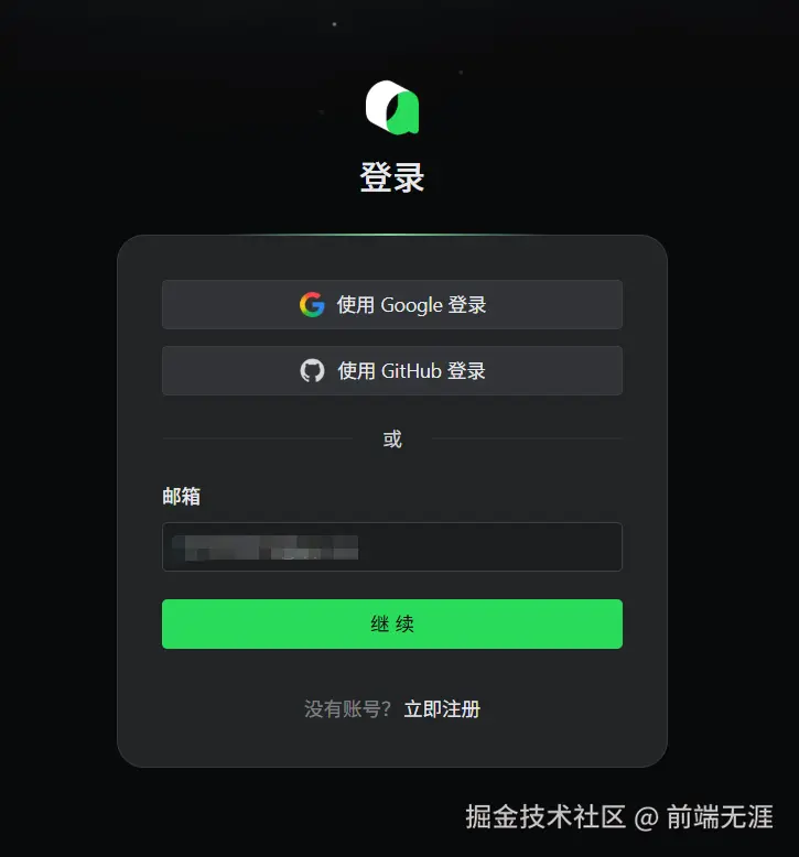 可以使用github,谷歌账号一键关联注册登录,也可以使用其他邮箱进行注册登录