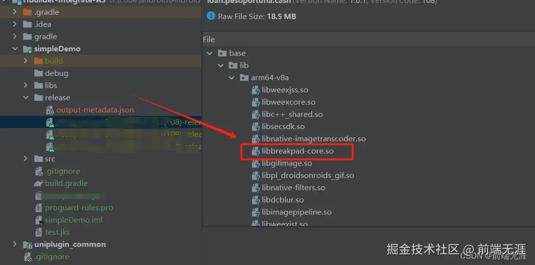 aab转换成apk包以后,安装包大小从二十多M变成了7M,怀疑文件丢失,但是生成的aab包却是正常的,打了一个aab,debug包运行报错提示so库文件找不到