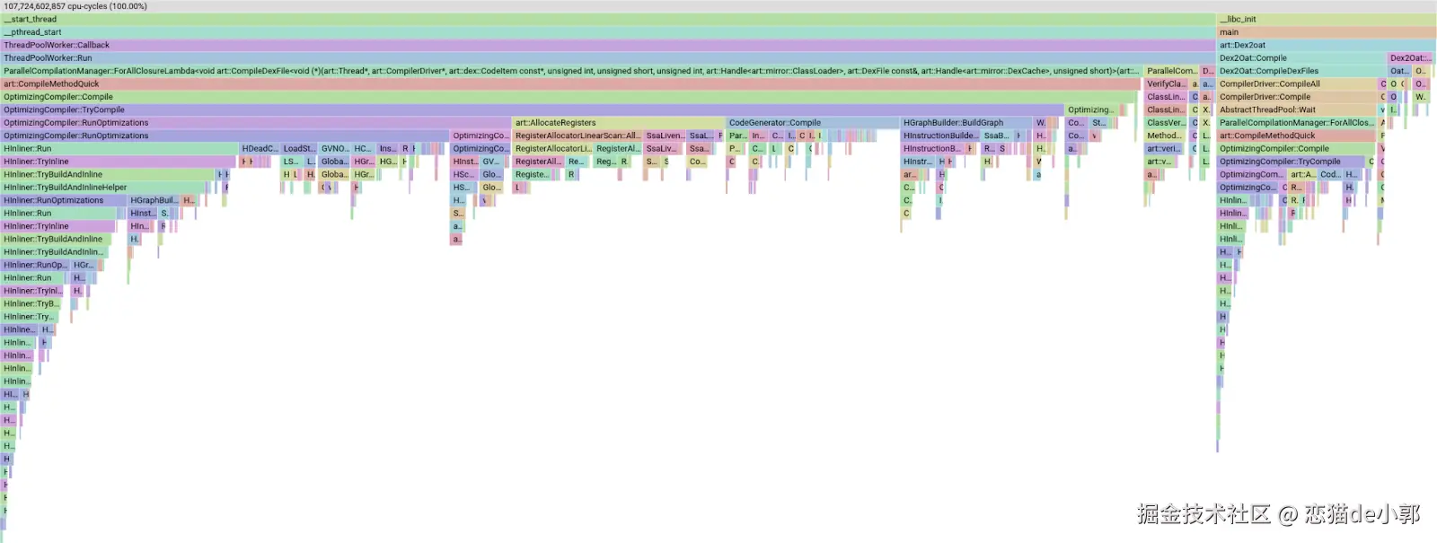 并且,这些改进对于 JIT 和 AOT(预先编译) 都有用,当然这里提到的 Android Runtime(ART)“编译速度”不是你在本地用 Gradle 构建 APK 的速度,而是「设备端 ART 对 app 字节码进行 AOT / JIT 编译的速度」 ,一般而言针对ART 内部的“编译器执行速度”会有: