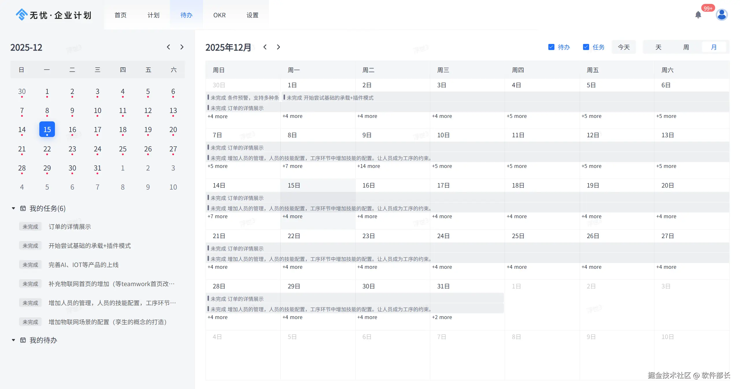 待办侧重于时间点与执行的独立性,本质上就是个人每日执行的待办清单以及快捷记录。通过待办列表可以跟踪每日完成情况,及时调整资源分配。