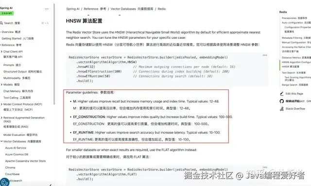 - Redis 史诗级增强:新增 Redis Chat Memory(支持持久化、搜索),向量存储支持文本搜索与 HNSW 参数调优,确立了 Redis 在 Spring AI 生态中 RAG/记忆系统的首选方案之一。