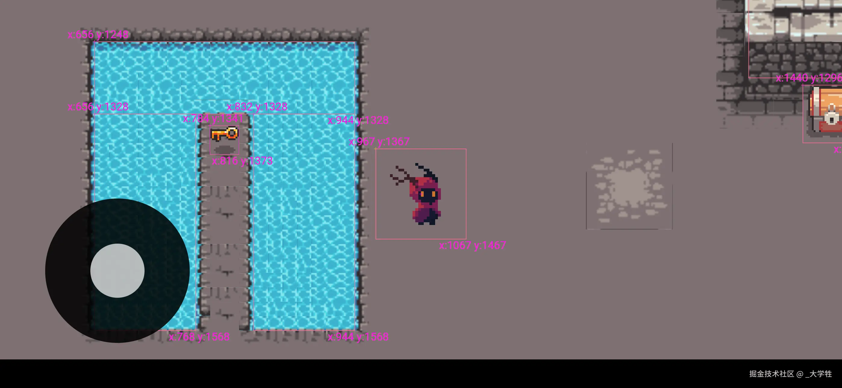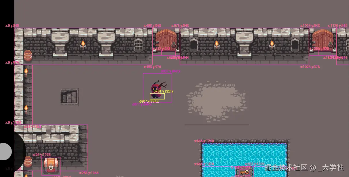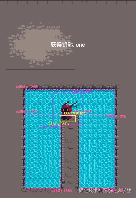 Tiled绘制并在 Flame 中加载的 2d像素地图。 - 地图交互:通过组件化模式,新建了多个可供交互的组件如(门、钥匙、宝箱、地刺),为游戏增加了互动性。