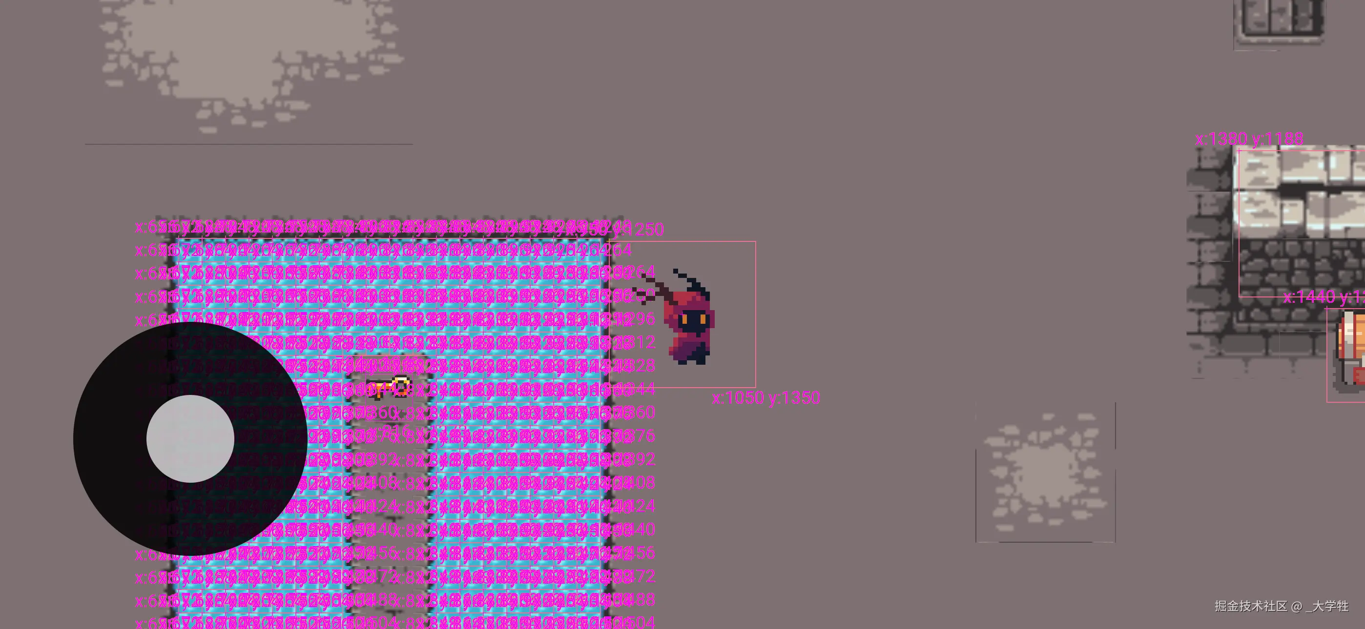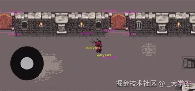 SpriteSheet) 创建角色,支持 idle/run 等动画状态切换。 - 玩家交互:通过摇杆控制角色移动,并根据方向翻转动画。