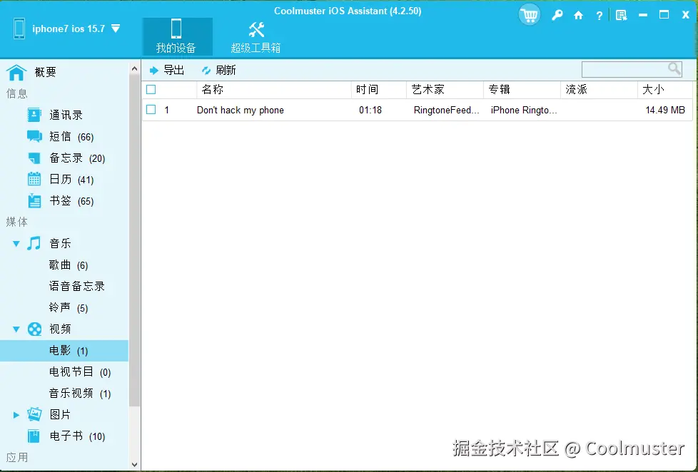 Coolmuster iOS Assistant是将 iPhone 视频传输到 U 盘的最佳方式,因为它能直接完成传输,并允许您在传输前预览和选择视频。此外,它还支持多种视频格式,例如 MP4、MOV、M4V 等。该软件兼容Windows和Mac系统。