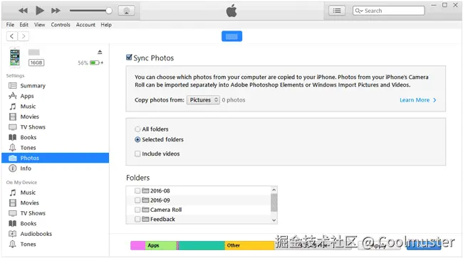 步骤 3. 在 iTunes 窗口中点击您的 iPhone,然后选择“照片”。