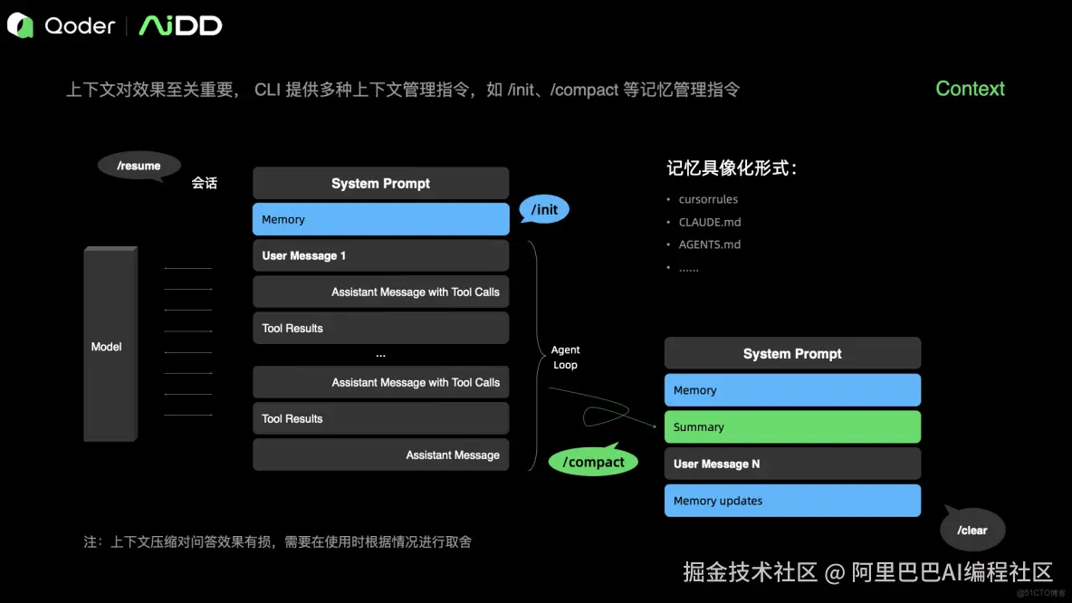 /compact:让 AI 自己总结当前上下文,保留核心信息; -