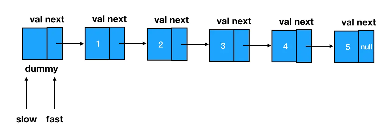 // 初始化快慢指针,均指向dummy
