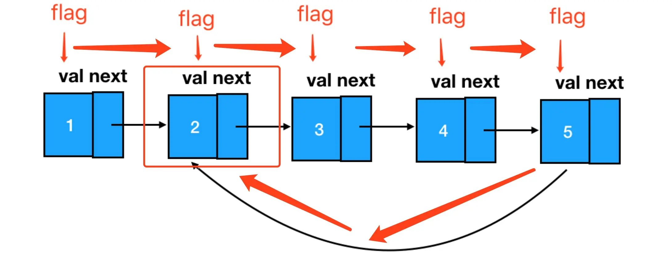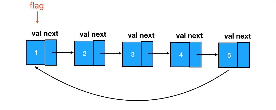 从 flag 出发,只要我能够再回到 flag 处,那么就意味着,我正在遍历一个环形链表。