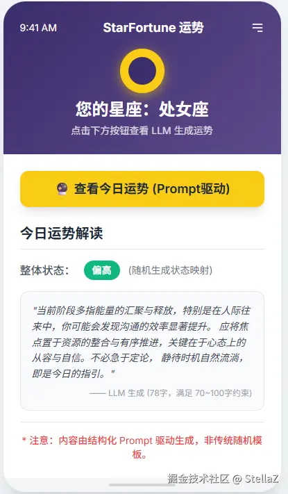 “看起来像星座运势,实际是 Prompt 驱动的文本生成规则系统” 。
