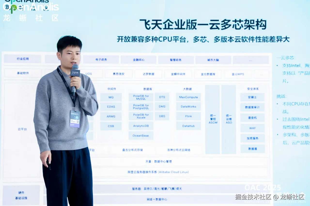 2025 年 11 月,备受瞩目的龙蜥大会在北京隆重举行。作为中国开源操作系统生态的重要里程碑,本届大会汇聚了来自芯片、硬件、软件及云服务等领域的顶尖专家与行业代表。会上,阿里云智能集团高级技术专家沈培以“国产 CPU 平台上操作系统和云产品性能优化实践”为主题,系统性分享了阿里云联合龙蜥社区以及 CPU 厂商等,在多架构异构计算环境下的深度技术积累与创新成果。