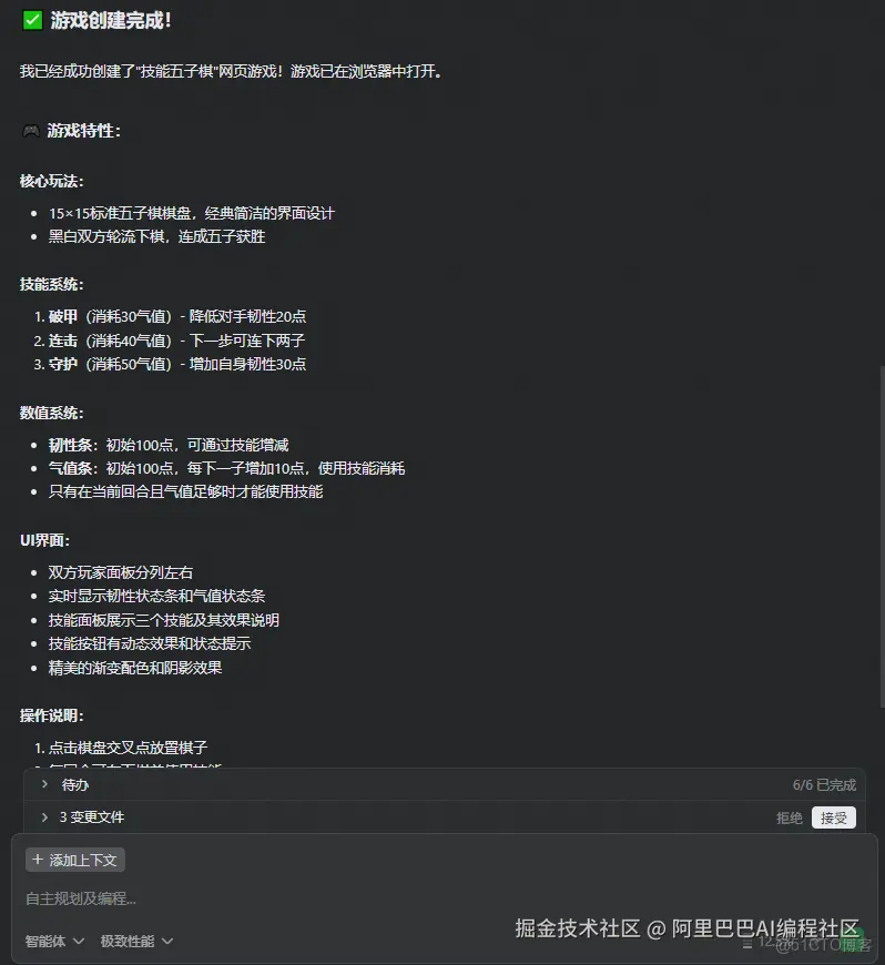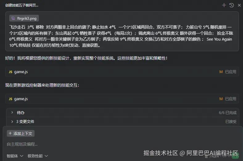 韧性值已经调整完毕,目前“技能五子棋”已经完全被 Qoder 设计出来并符合预期。