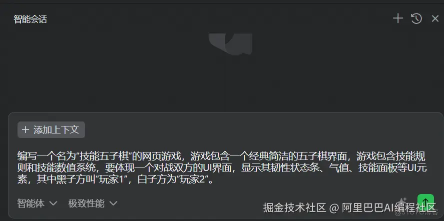 2.打开智能会话(快捷键Ctrl+L),选择“智能体”模式,输入项目需求:
