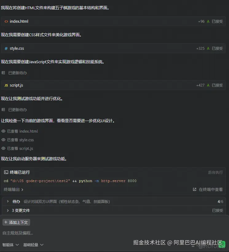 4.之后 Qoder 会自主编码。