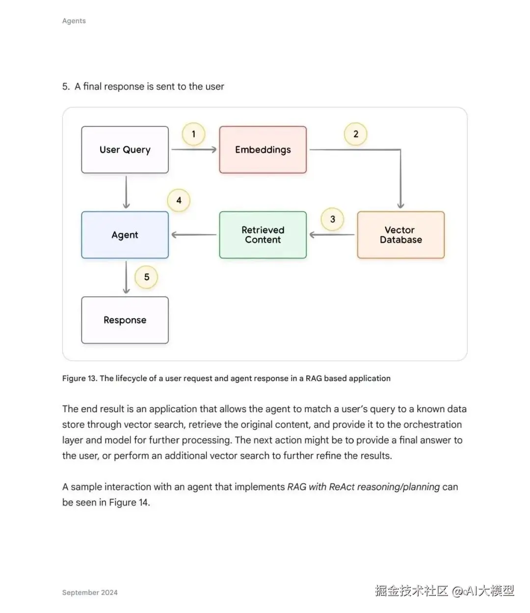 ReAct序列:这是Agents的核心工作机制!它包含四个步骤:用户发送查询、Agent开始ReAct序列、模型生成下一个动作、最终答案返回给用户。每一步都紧密相连,确保Agent能够准确理解并执行你的指令!