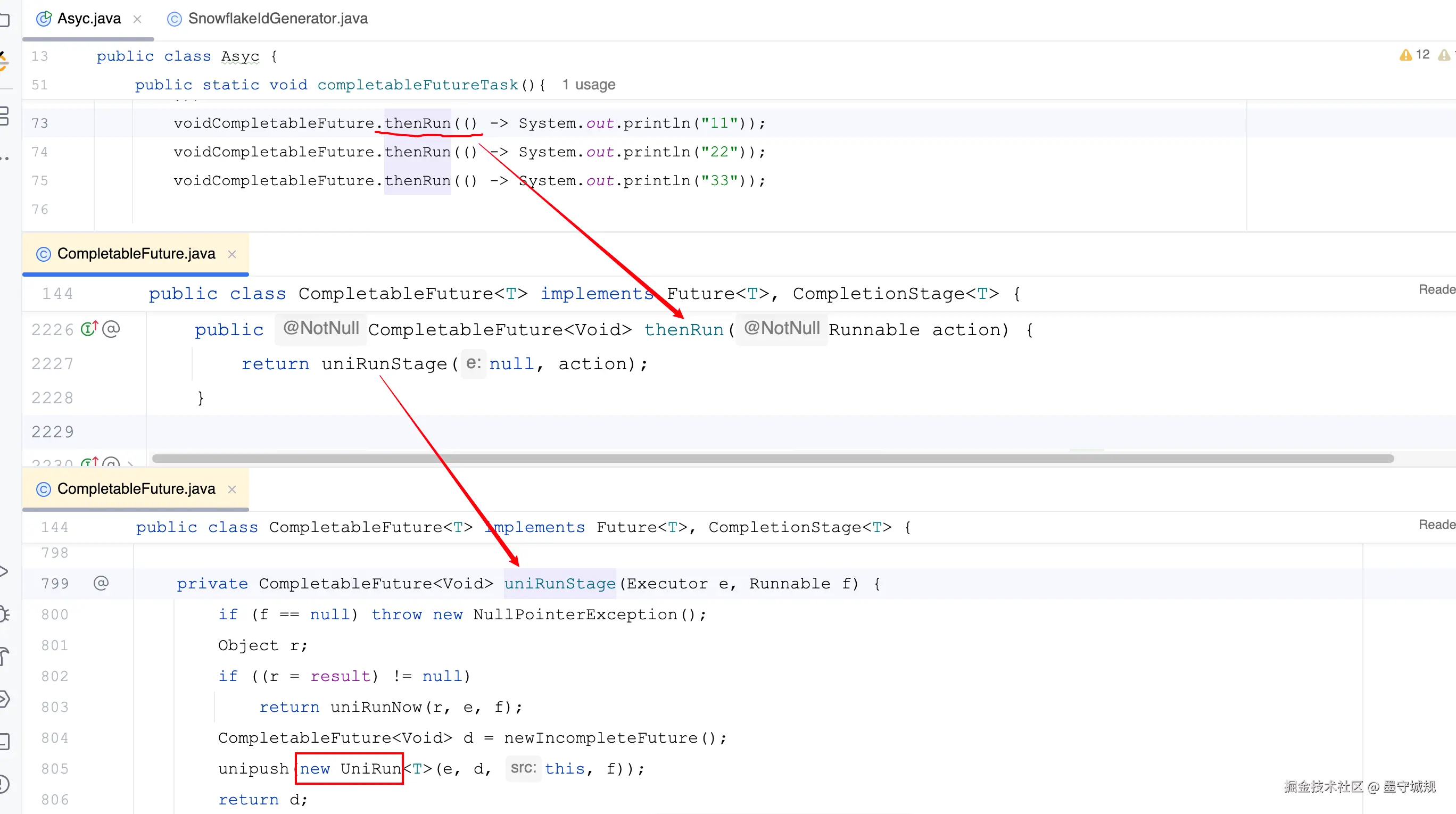 thenRun()相同的功能有三种方法,这里分析thenRun不带线程池的方式