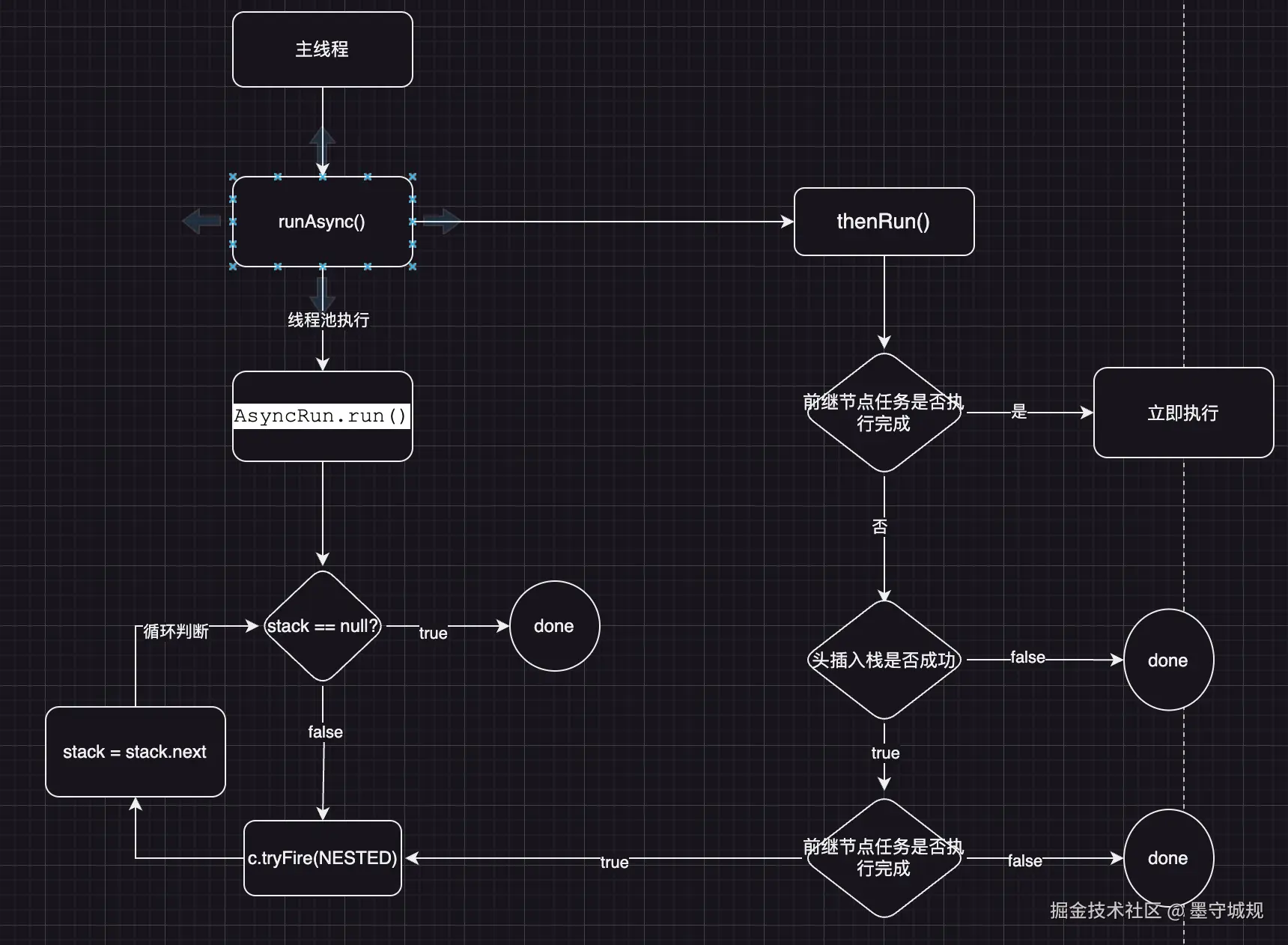 分析到这就可以回答开头的问题:如果task.thenRun(() -> System.out.println("11"));这个task任务已经执行完了,那就不需要压栈,直接执行 () -> {System.out.println("11")},如果task没执行完,才需要压栈。