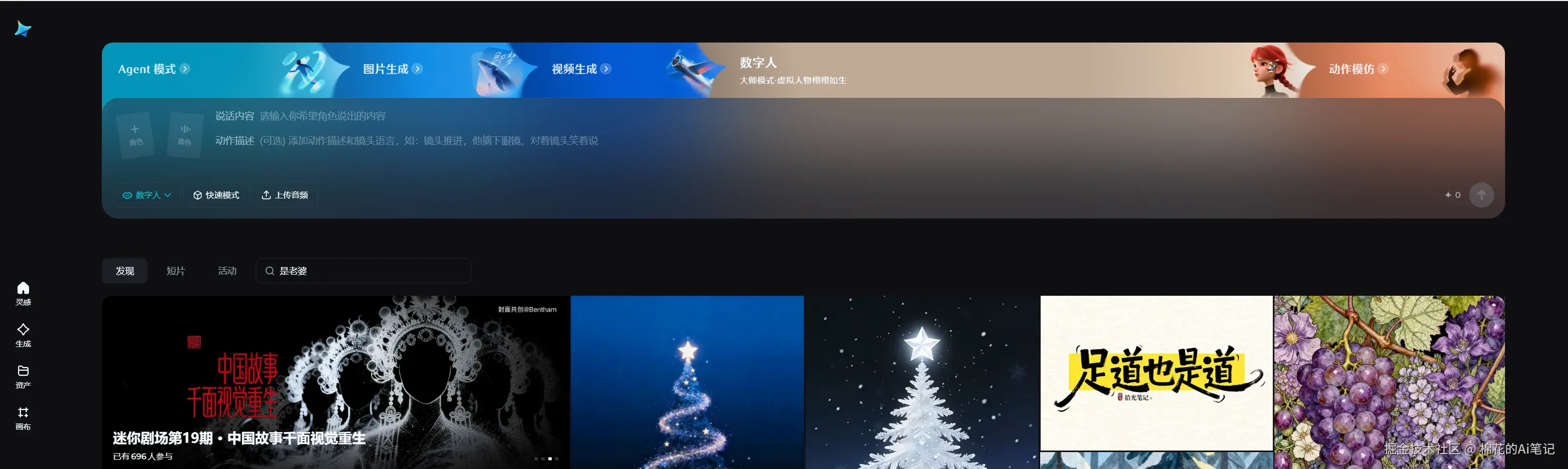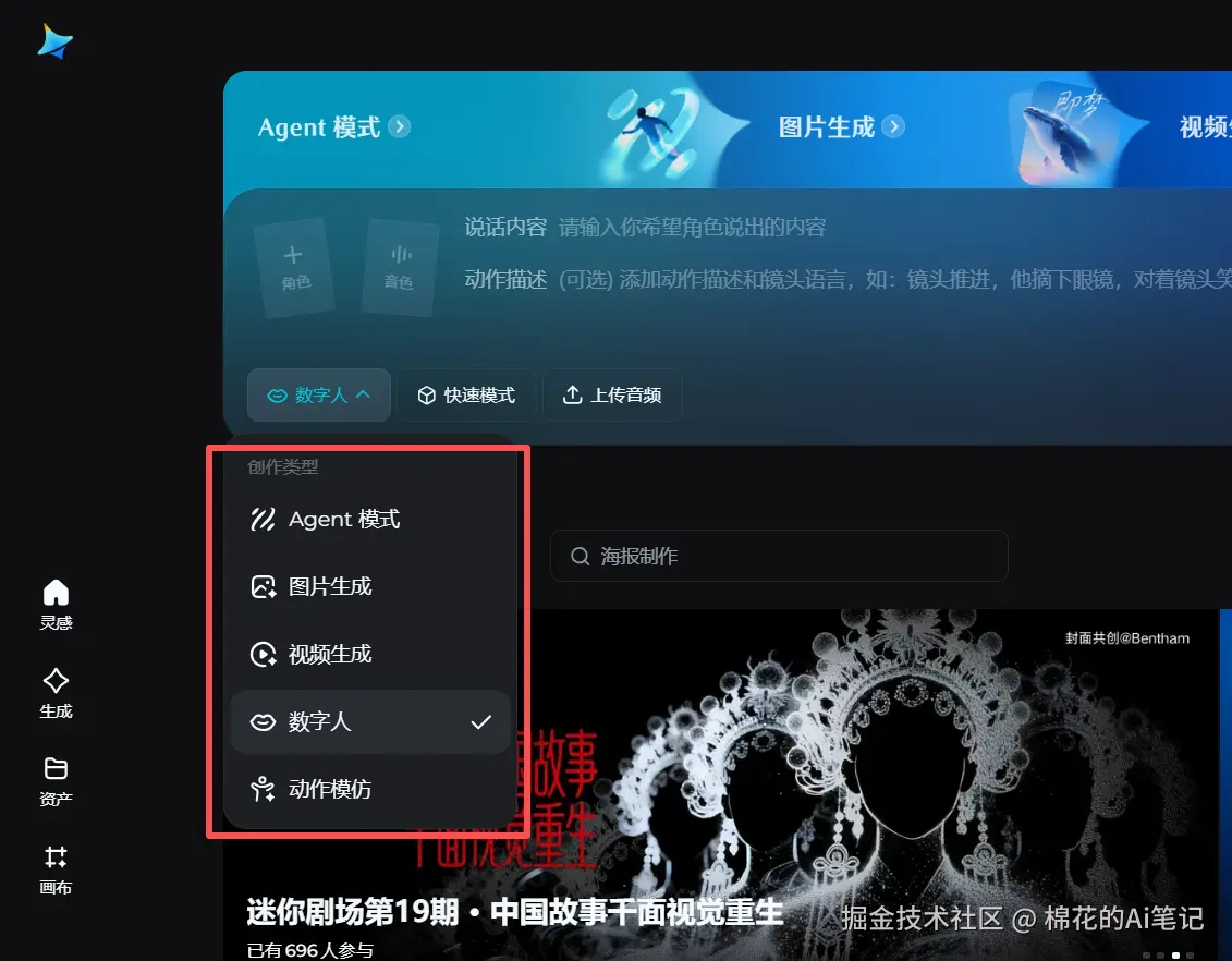 除了数字人,它还有强大的图片生成和Agent模式。