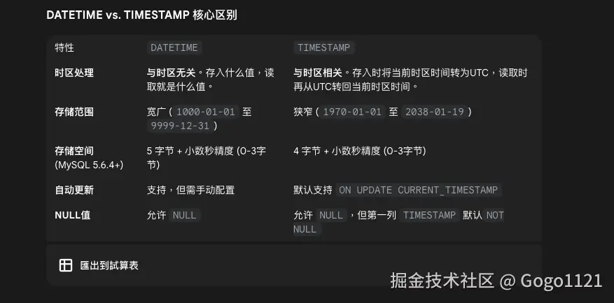 DATETIME跟timestamp这两者的区别