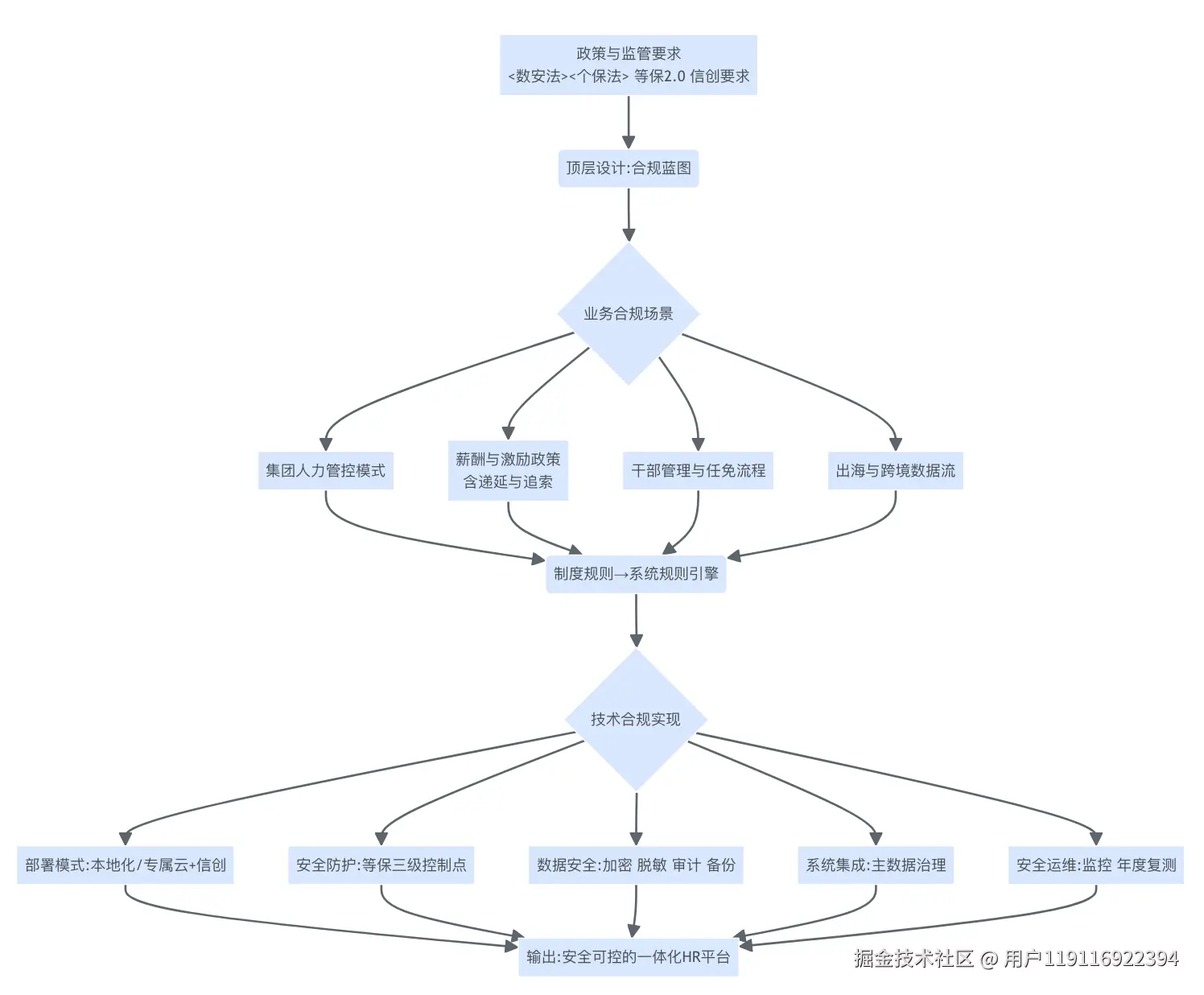 复杂的约束条件下,国央企HR系统如何不被“合规条款”牵着走?比较有效的办法,是先搭建一套“政策—业务—技术一体化”的合规框架,再去看产品、厂商和具体技术实现。