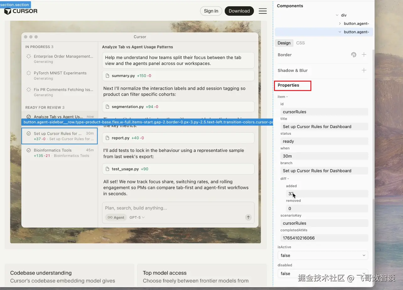 再有一个就是,Cursor Browser 开放了开发者工具,包括大家常用的 Console 选项卡。