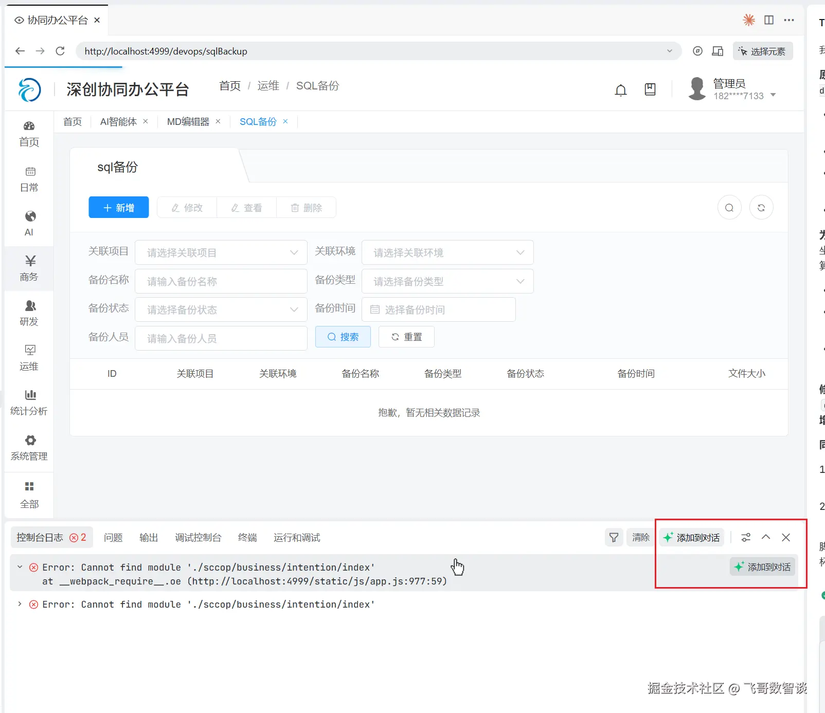但是,目前 Console 中出现的错误,并不能像 TRAE 一样直接点选加入对话,需要复制粘贴,不够一体化。
