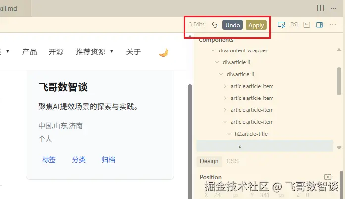 现在有了可视化浏览器,就可以直接点选目标,然后加入对话,进而通过指令进行修改。