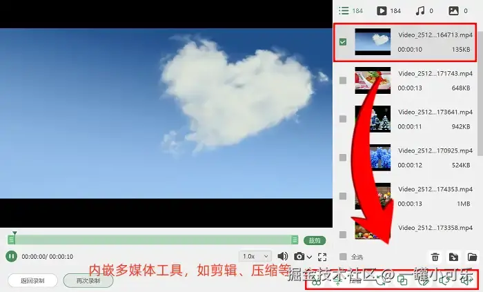 步骤3:录屏结束后,软件会自动弹出视频预览窗口。在这个窗口中,你可以直接开展基础剪辑操作,比如对视频进行快速分段处理、删除不需要的片段等。