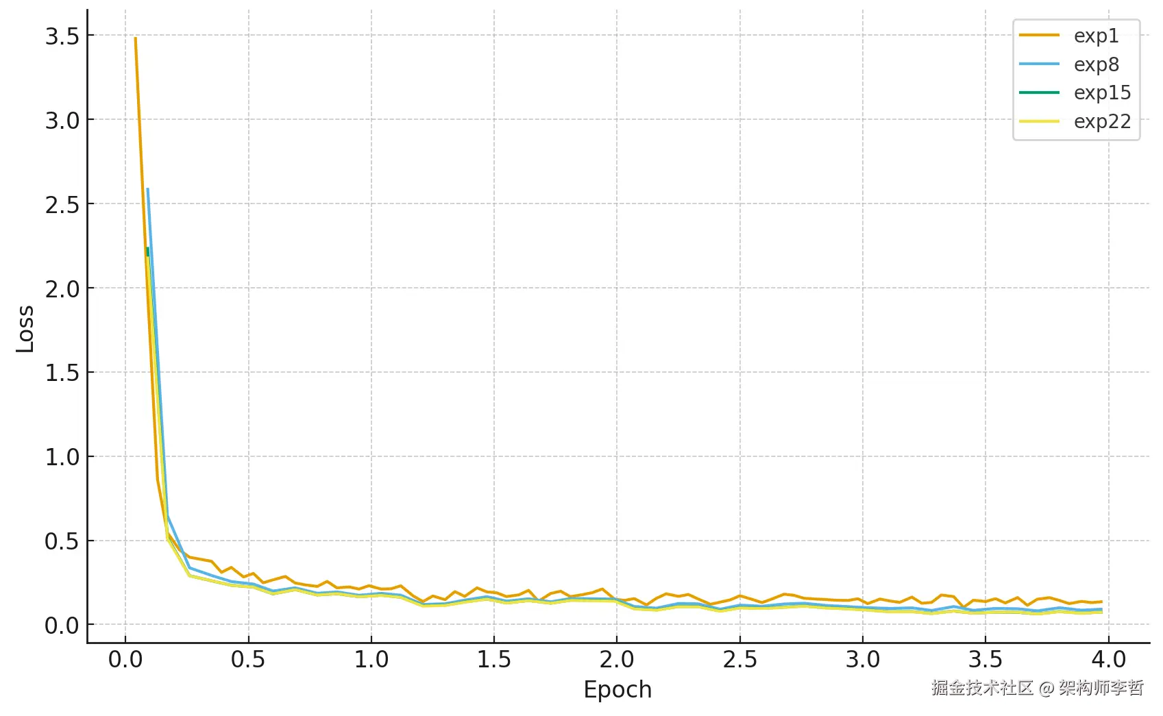 | 实验组 | LoRA rank | 学习率 | Batch Size | 高级功能通过率 | loss后期波动幅度(训练稳定性) |