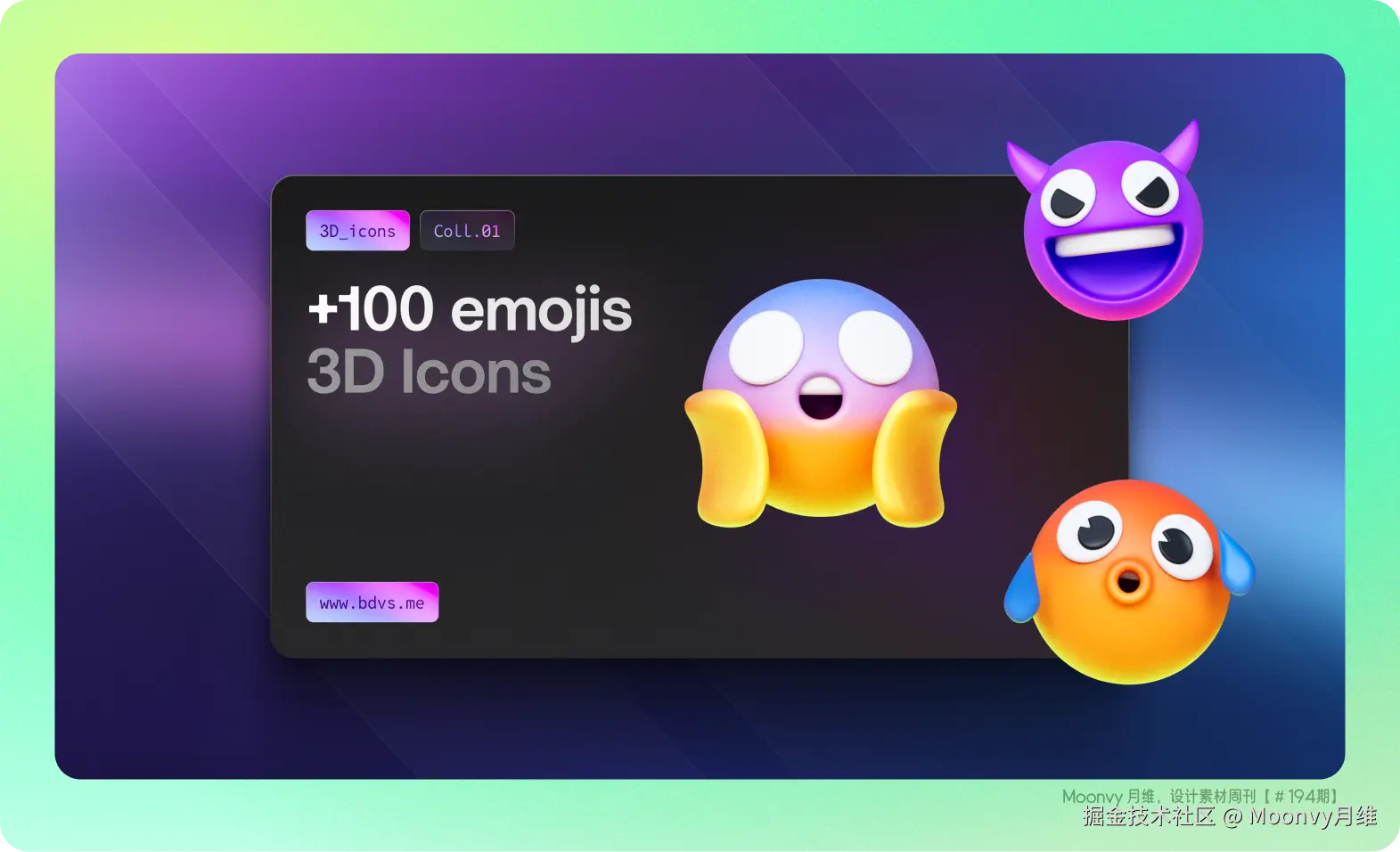 一套 100 个 3D 表情符号图标,由 C4D 制作并在 Photoshop 精细调整,适合用于万圣节主题落地页、社交媒体贴文或产品界面。