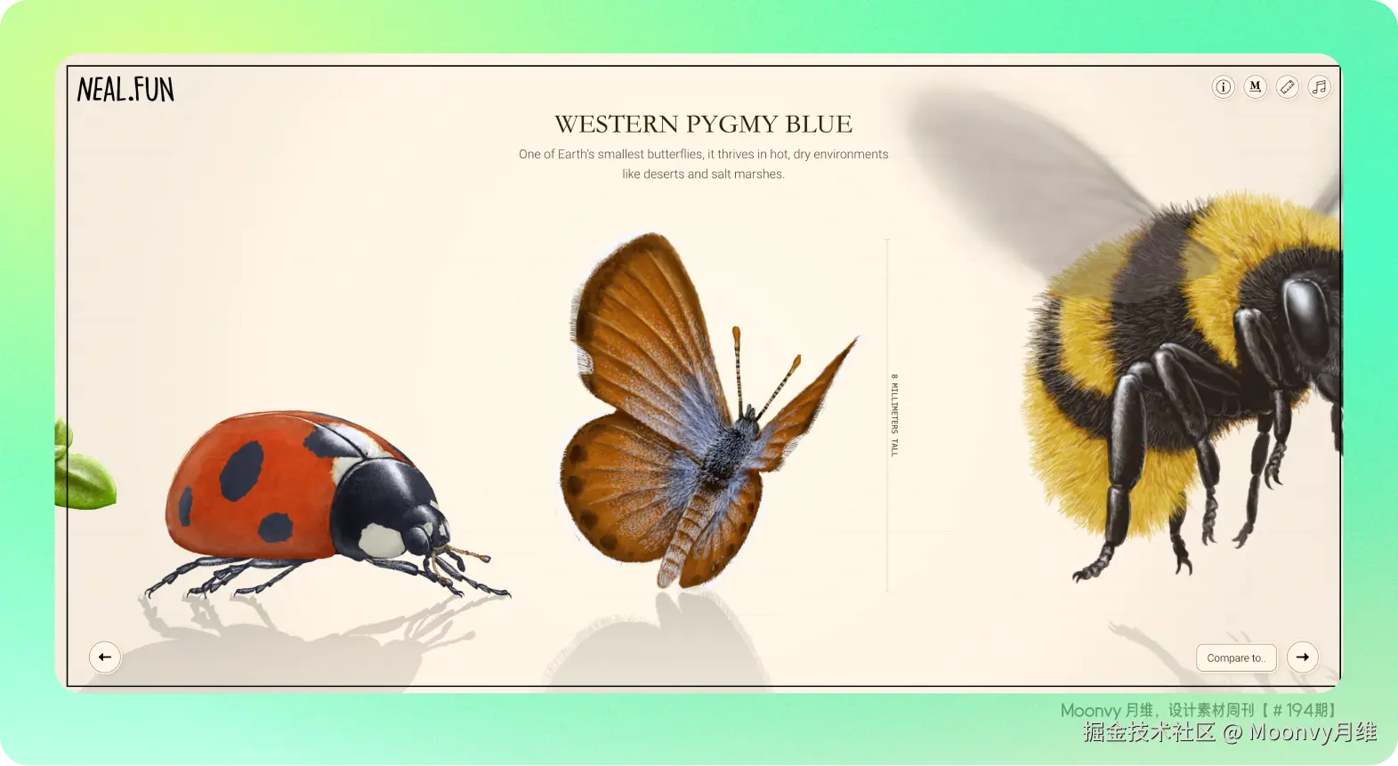 生命的大小,从 DNA 到人排列起来,网站设计的很有意思哦