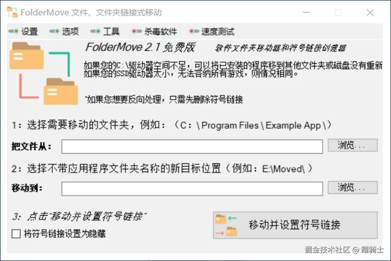 FolderMove 是便捷的文件夹迁移工具,可安全移动系统或自定义文件夹,迁移后自动创建路径链接,确保原快捷方式和软件关联正常。无需手动复制粘贴,轻松释放 C 盘空间,避免路径错乱与文件丢失,优化磁盘文件管理效率。