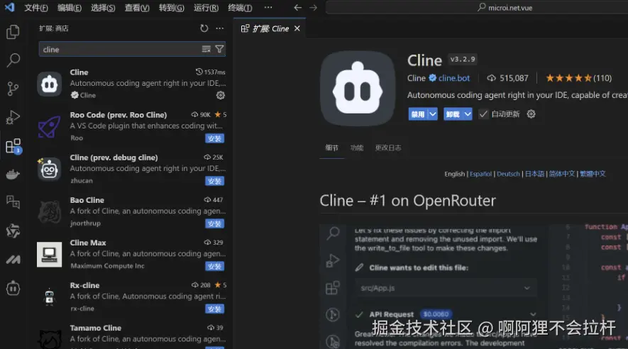Cline 是 VSCode 上最强大的开源 AI 编程插件之一,支持多步自主执行。