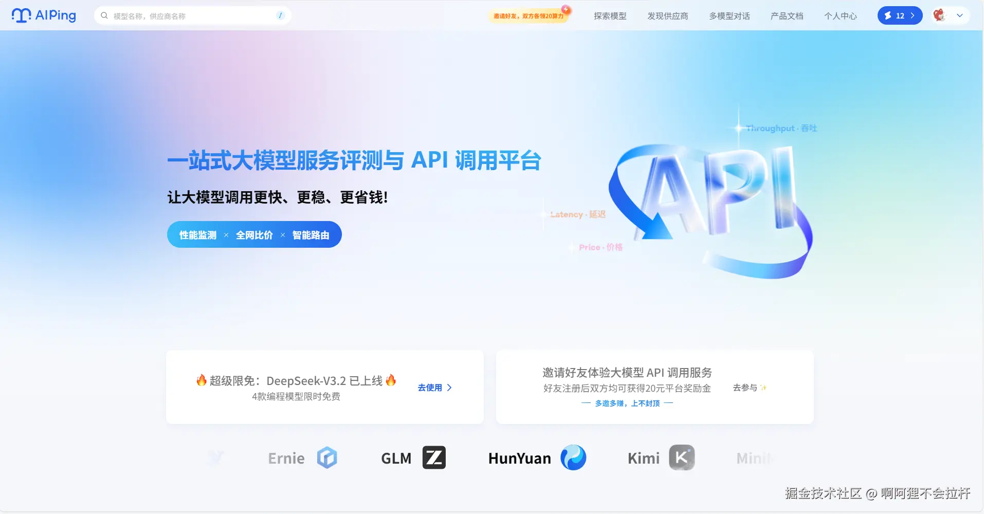 在大模型百花齐放的今天,开发者面临着“选择困难症”与“钱包焦虑症”的双重夹击。清程极智(Qingcheng.AI)推出的 AI Ping 平台,通过独创的智能路由算法,实现了对全球主流模型供应商的聚合与性能评测。我将深入解析 AI Ping 如何帮助开发者自动择优降本,并手把手教你如何利用 Claude Code、Cline 及 Dify 等主流工具,免费薅到 MiniMax-M2、GLM-4.6 和 Kimi-K2-Thinking 的羊毛,构建高效、零成本的 AI 开发工作流。