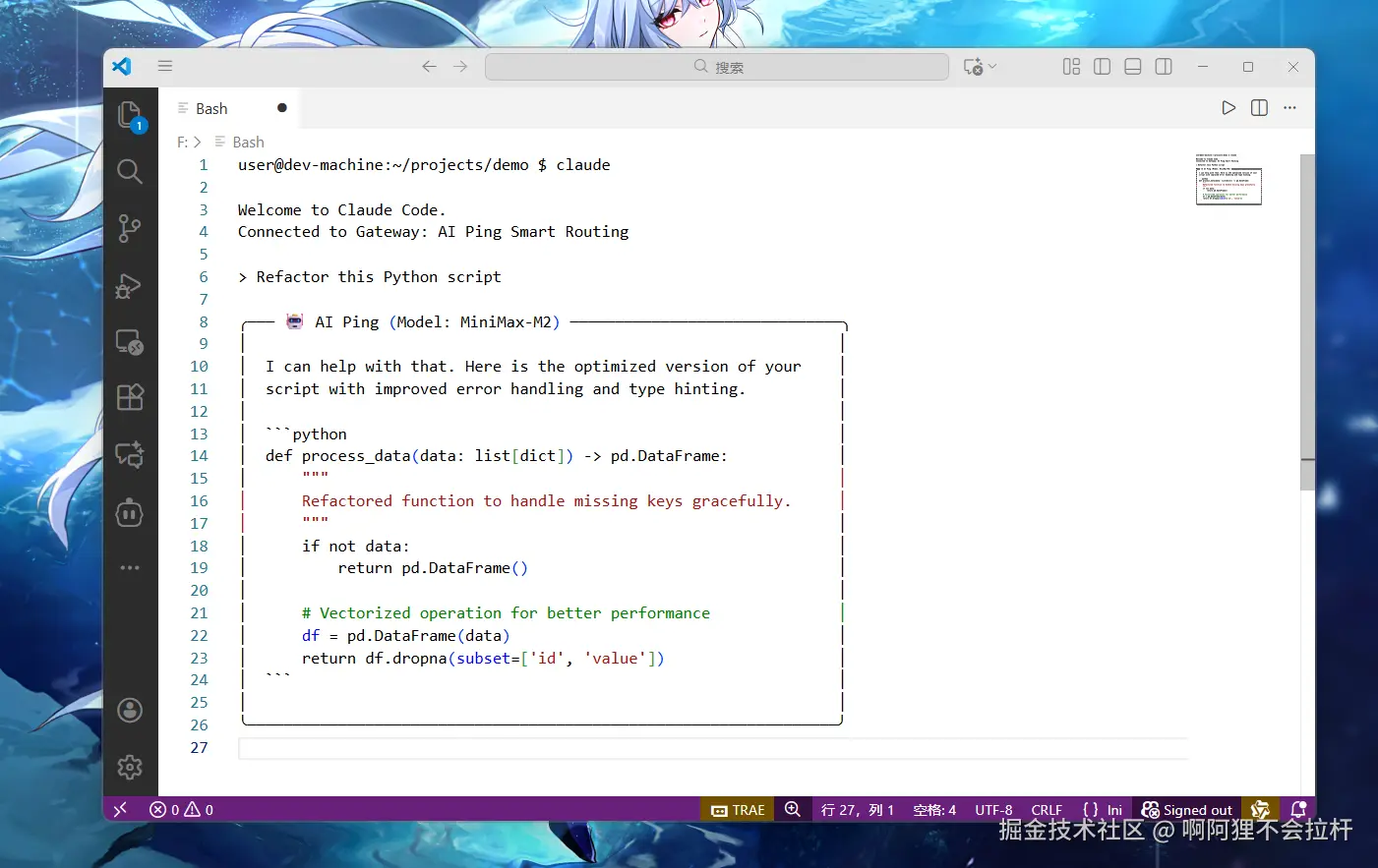MiniMax-M2,实现白嫖。 - 步骤 ③:启动并验证 在终端输入