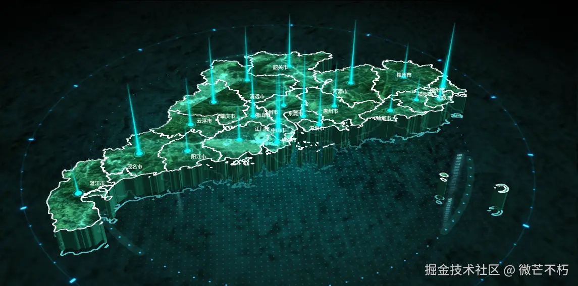 这是一个基于Three.js的3D交互式地图可视化系统,以广东省地图为展示对象,实现了丰富的3D视觉效果和交互功能。本文将对项目中的核心函数进行逐步骤、逐函数的详细分析,帮助读者深入理解系统的实现原理。