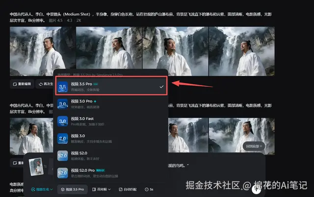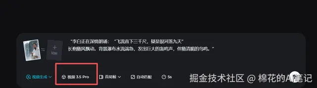 Step 2:注入听觉震撼(核心操作) 点击生成视频,模型选择 视频 3.5 Pro。