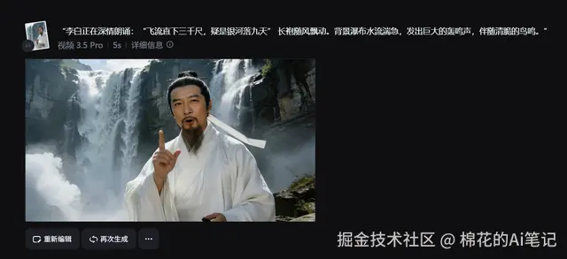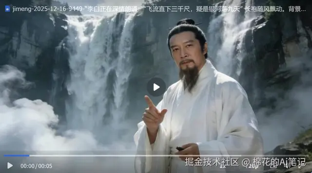 “李白亲自讲解《将进酒》” 的视频——有表情、有情绪、有环境音,甚至连那种“大河之剑天上来”的豪迈感都还原了。