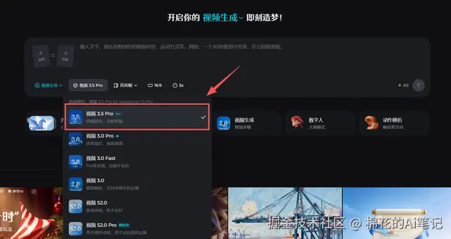 - 一定要选 “视频 3.5 Pro”