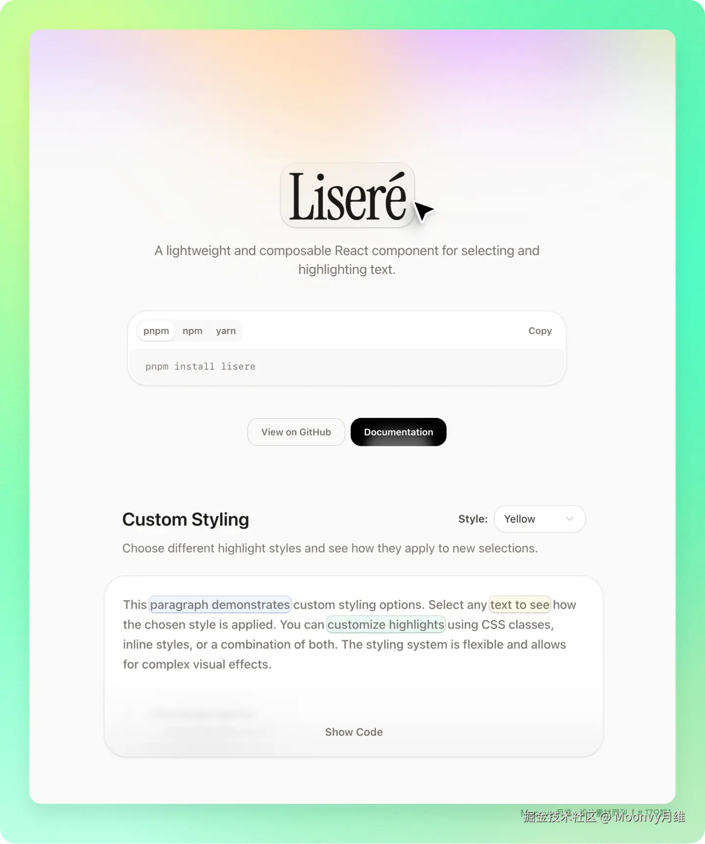 用于选择和突出显示文本的轻量级且可组合的 React 组件,完全免费在你的项目中使用