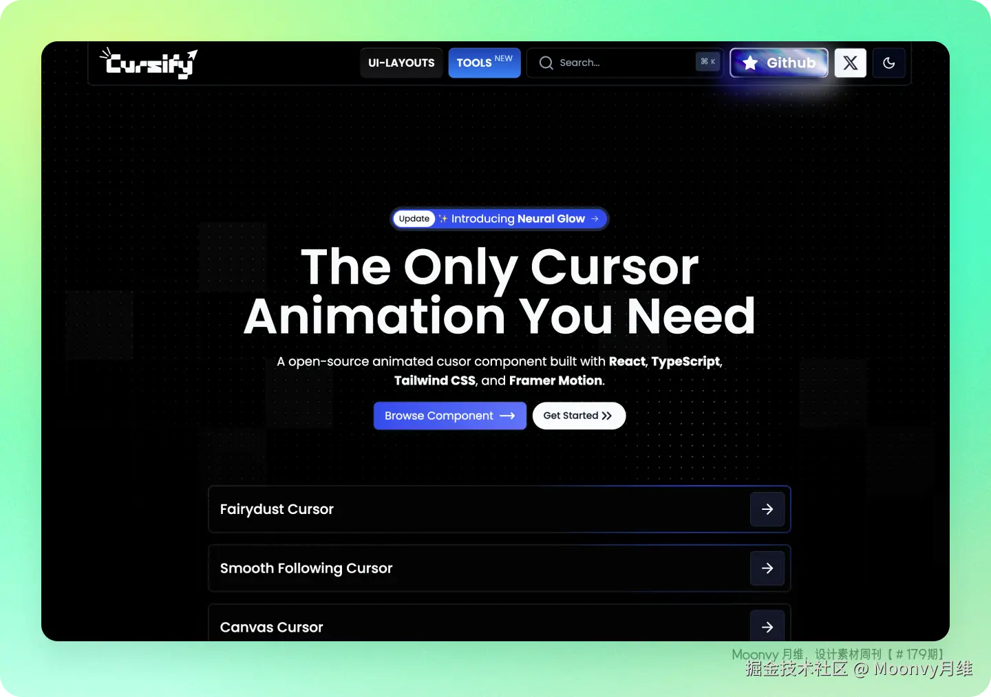 使用React、TypeScript、Tailwind CSS 和 Framer Motion 构建的开源动画光标组件,可以让你的网站更有特色