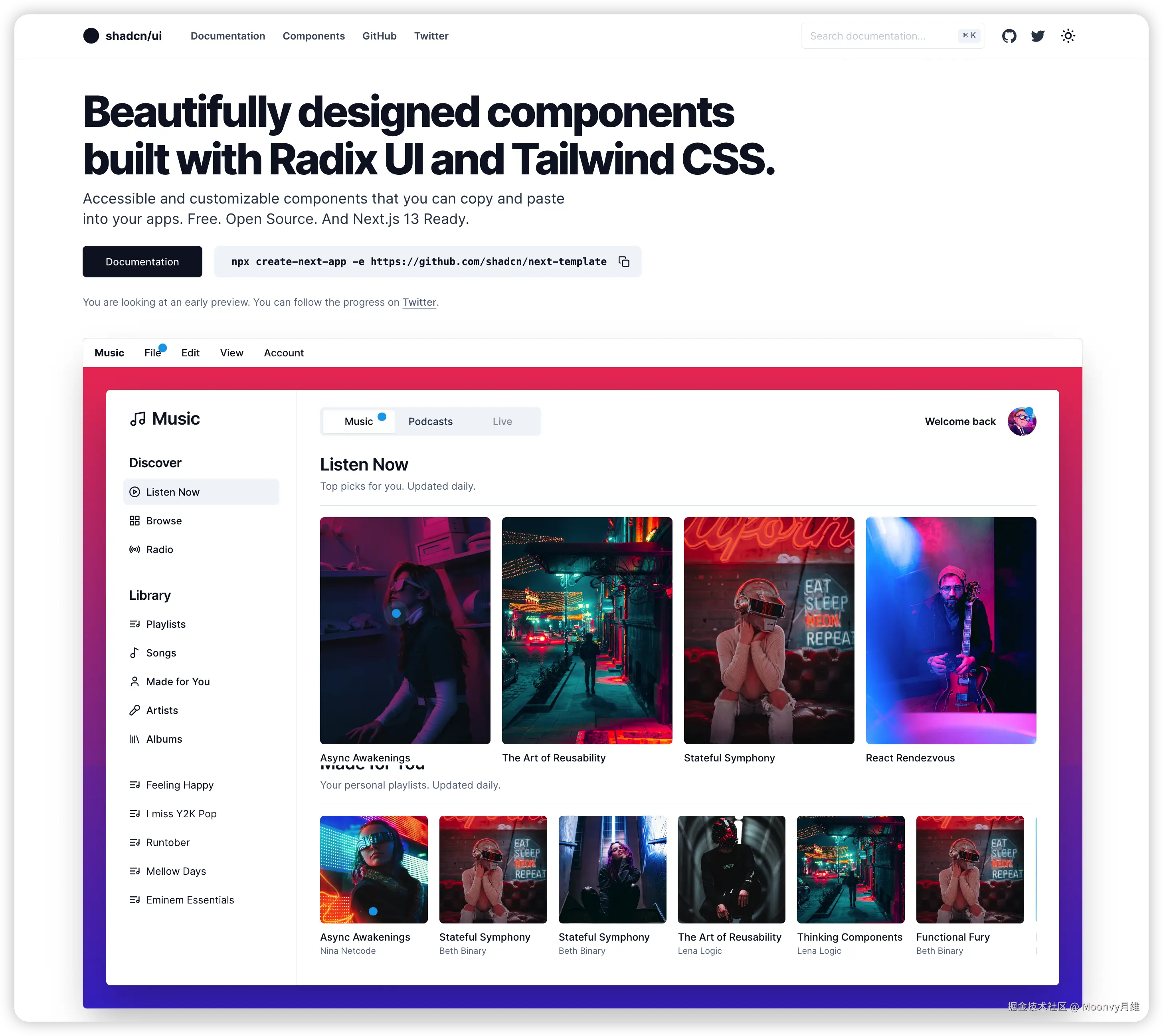 Shadcn UI - 使用 Radix UI 和 Tailwind CSS 构建的设计精美的组件库