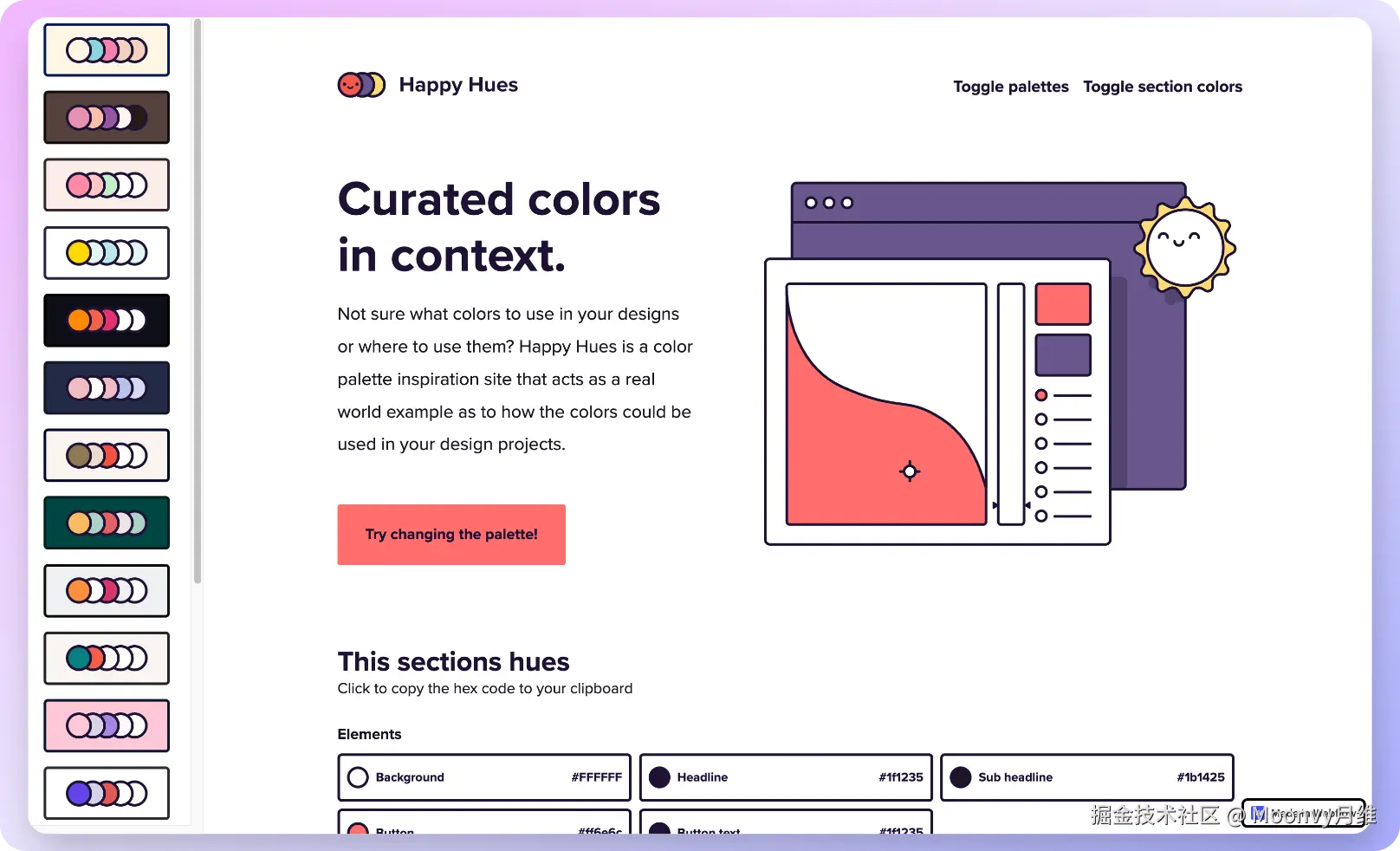 以真实网站示例,找到合适的配色:Happy Hues