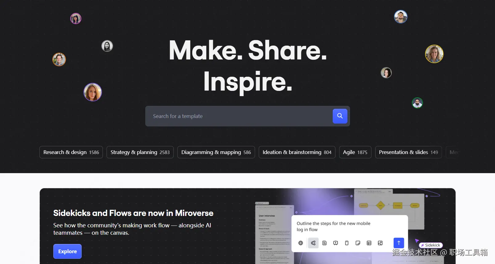 再说那个被称为“Miroverse”的社区,内置海量优质的模板资源。你想搞个OKR规划或者画个复杂的客户旅程地图,根本不需要自己从零开始画。直接进去搜,你能找到Google、Spotify这些大厂敏捷教练上传的实战模板,拿来就能用。