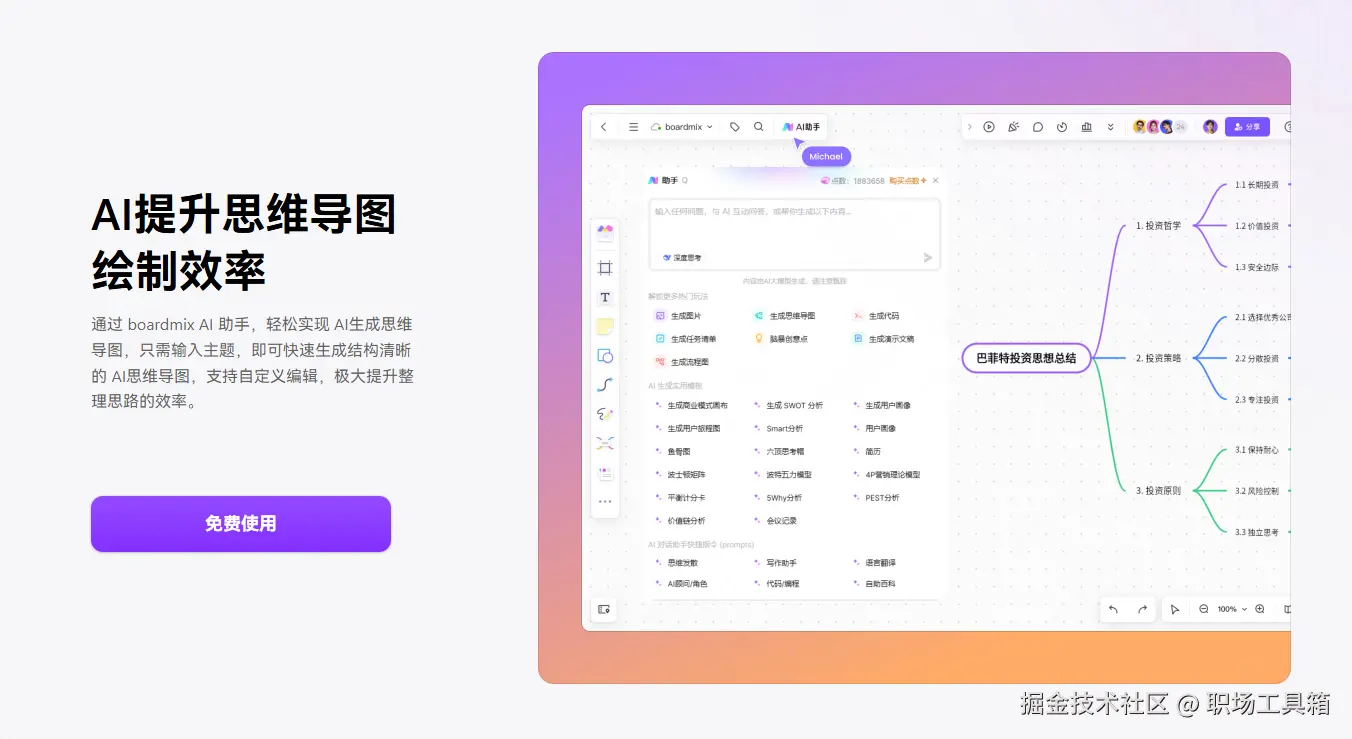 市场部要搞个营销活动的头脑风暴,或者内部培训要做个课件,用 boardmix 的 AI 功能几分钟就能出个雏形。