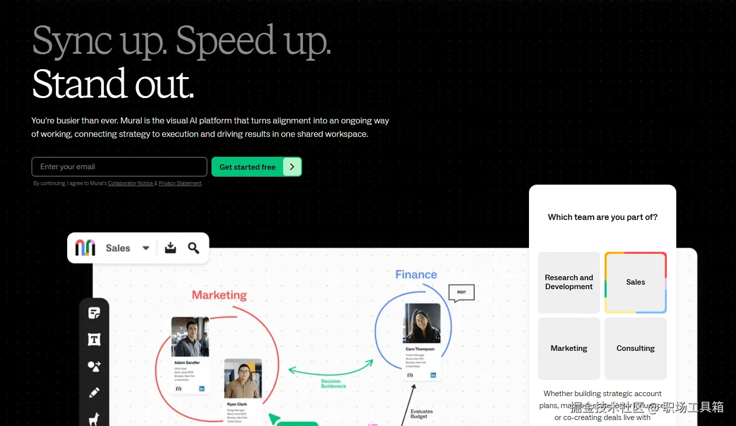 如果说 Miro 是为了“自由协作”而生,那么 Mural 就是为了“结构化引导”而生。Mural 诞生初期深耕设计思维和敏捷领域,对于那些苦恼于会议经常跑题、讨论发散却无结论的团队管理者来说,Mural 仿佛一位严谨而专业的会议主持人。