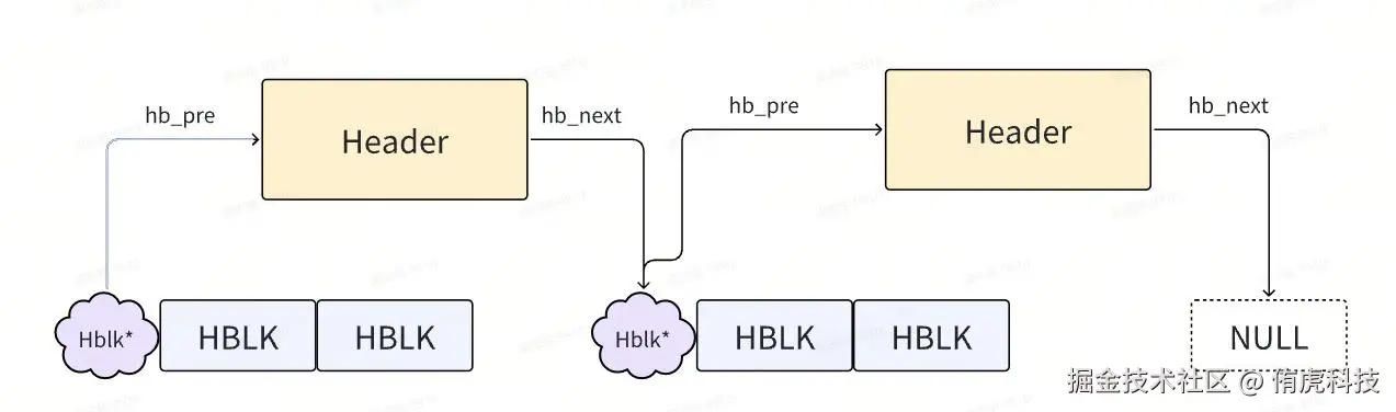 GC_add_to_heap方法将创建出来的内存块加入相应的GC_hblkfreelist链表中。同时加入一个全局的存放堆内存信息的数组中。
