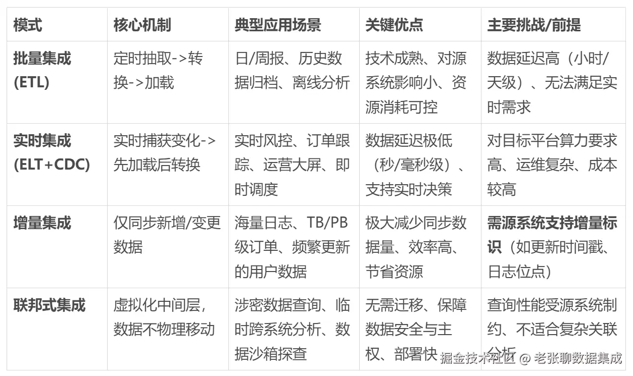 数据集成不是一刀切,4种常用模式对应不同场景,直接对号入座: