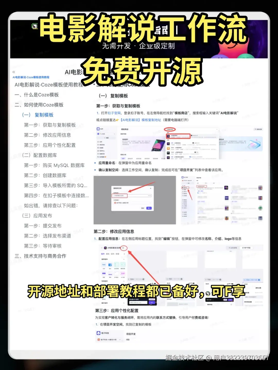 这套 “AI电影解说·Coze模版” 是完全无需开发、免费开源的!我已经把整个流程封装好了。