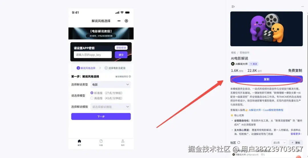 🚀 获取方式: 打开扣子官网,去【模板商店】搜 “AI电影解说” 。
