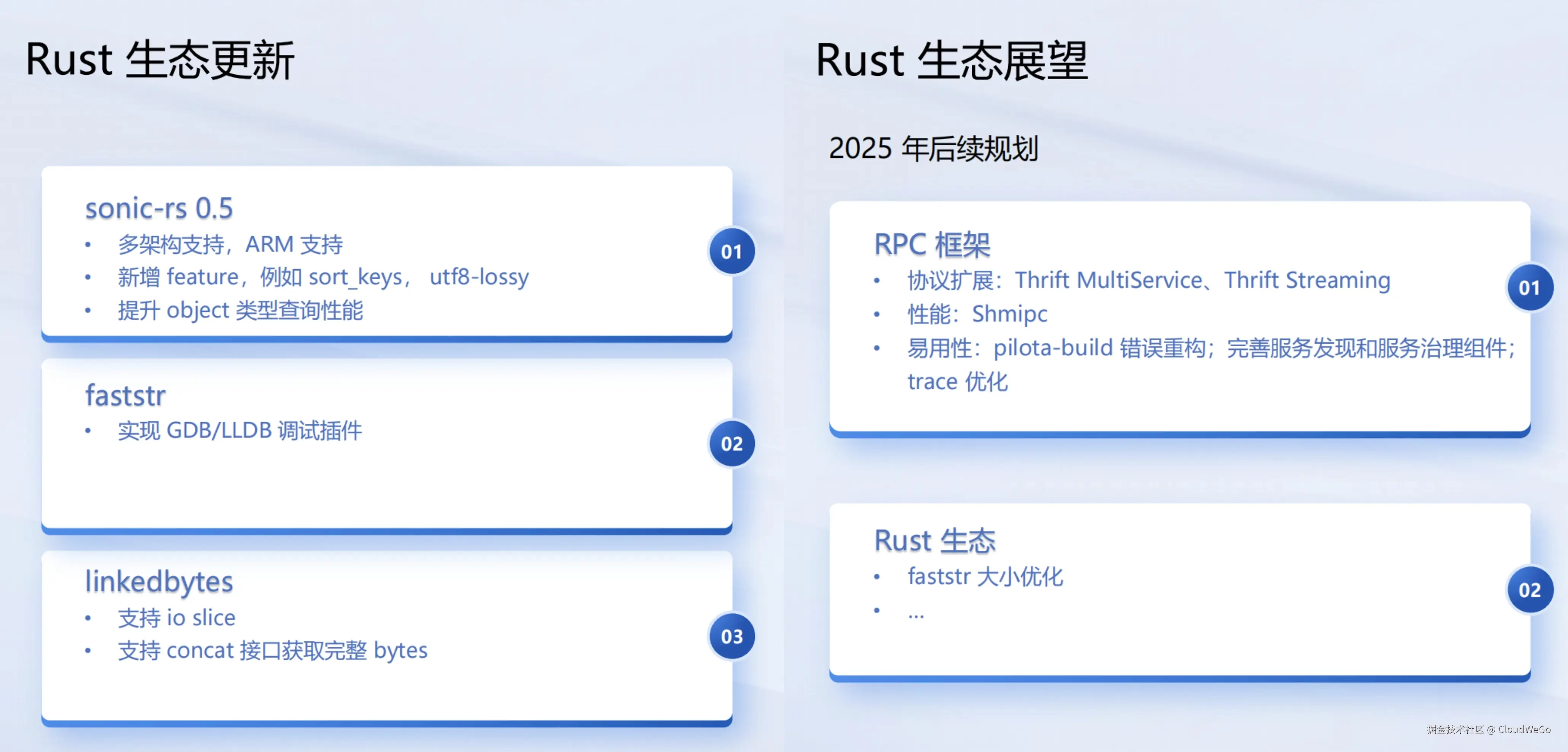 sonic-rs、linkedbytes等组件的性能与功能覆盖,构建更完整的 Rust 微服务工具链。